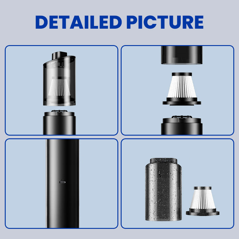 TYPE-C CHARGING LONG BATTERY LIFE- This vacuum cleaner features a Type-C charging port for faster charging and better compatibility. It also has a long battery life and can work for about 13 minutes.