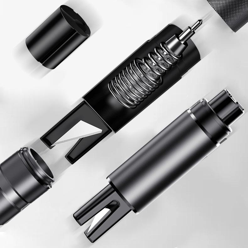 Escape in a flash! This car emergency hammer is your quick ticket to safety. In a crisis, imagine being trapped inside your vehicle and the windows just give way. When an emergency arises, firmly grip this hammer in hand and press it against the car window with a single powerful thrust. Thanks to its built-in pressure spring, the glass shatters instantly, providing a swift escape route.