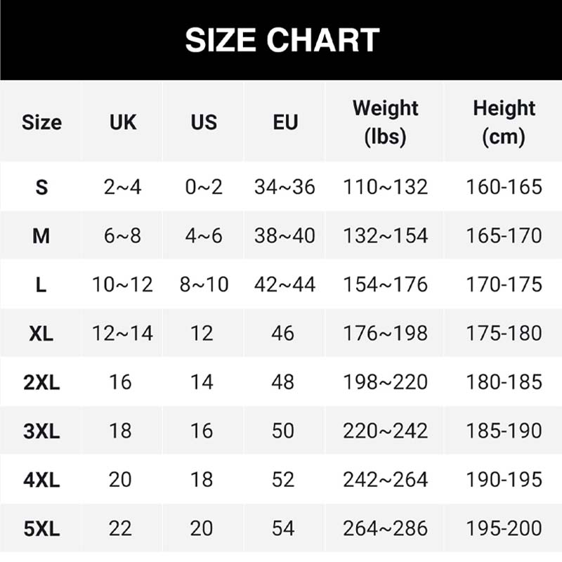 Sizes: S, M, L, XL, 2XL, 3XL, 4XL, 5XL