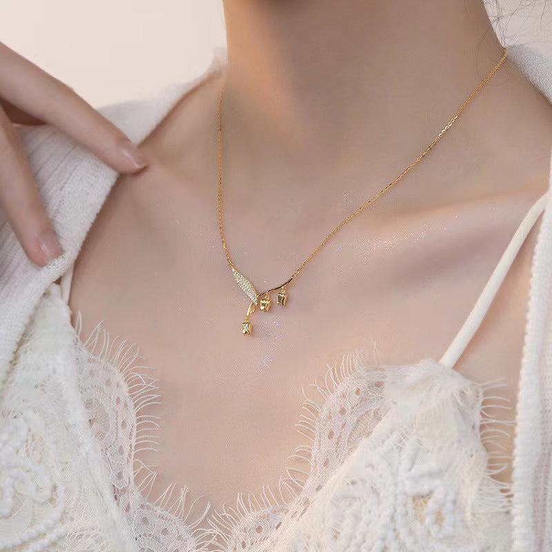 Enhance your jewelry collection with the Women's Elegant Bell Orchid Necklace. This necklace is a stunning piece that exudes elegance and beauty. The centerpiece of the necklace is an exquisite and delicate Bell Orchid pendant, which adds a touch of grace and femininity to any outfit.