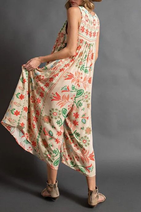 😍Vintage-style sleeveless jumpsuit features a beautiful floral print and a loose fit for ultimate comfort. Effortless to wear - there are no buttons or zippers - just slip it on and you're ready to go!