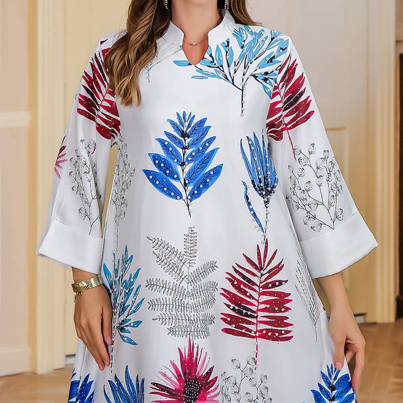 ELEGANT LEAF PRINT DESIGN - Adorned with a nature-inspired leaf print, this dress exudes sophistication and elegance, offering a refined touch to your look with its beautifully detailed pattern.