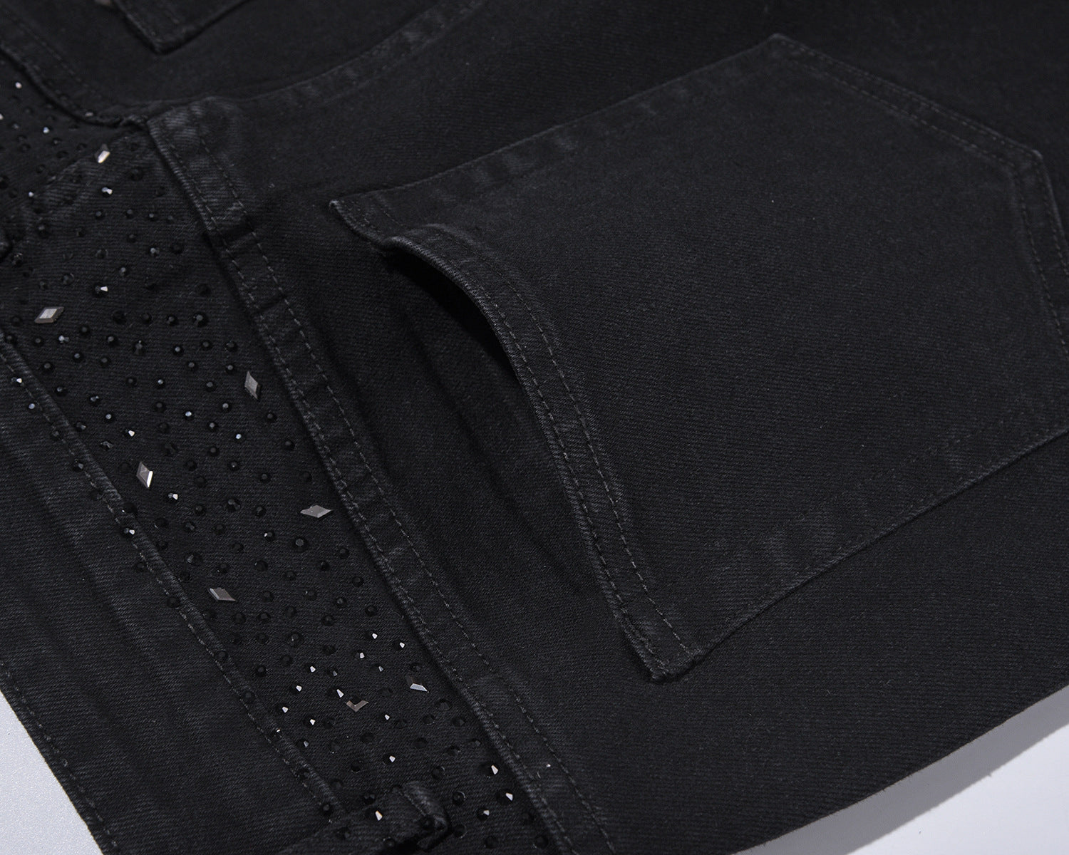 👖 HOT SALE 60% OFF! ✨ Rhinestone Embellished Slim-Fit Black Denim Jeans - Stretch Comfort with Sparkling Waistband for a Dazzling Look 💎🖤