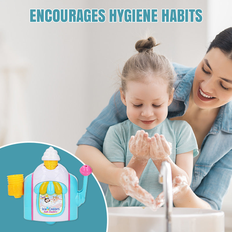 HAUSKOJA KYLPYLELUJA LAPSILLE TEHTÄVÄKSI - Tee kylpyhetkestä hauskaa tällä saippuakoneella, joka luo jäätelömäisiä kuplia ja kannustaa lapsia nauttimaan kylpyhetkestä hauskoilla tee-se-itse-saippualuomuksilla.