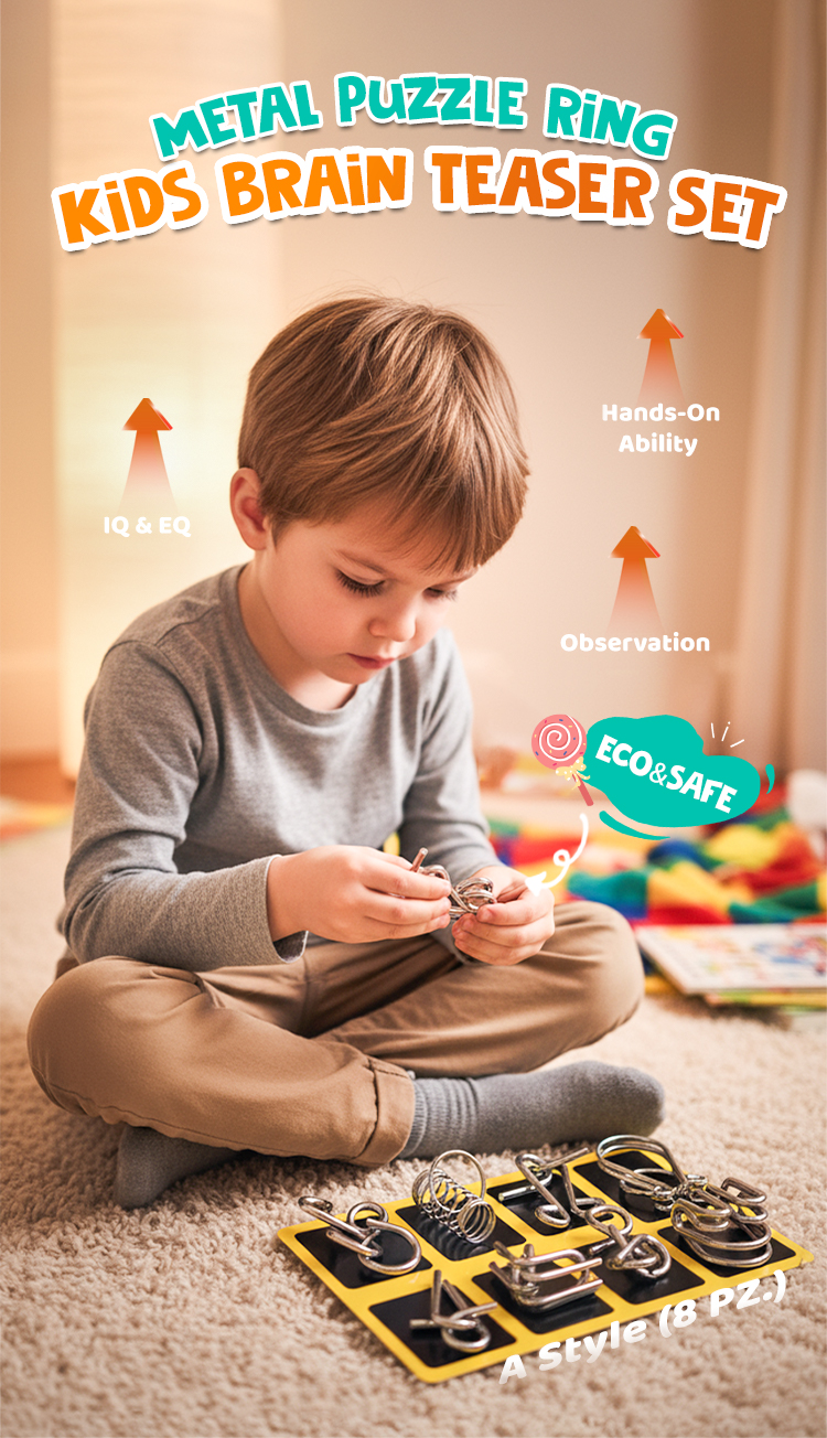 🔥Last day 50% Off 🔥Metal Puzzle Ring Eight-Piece Blue Version Brain Teasers,Developing the human brain