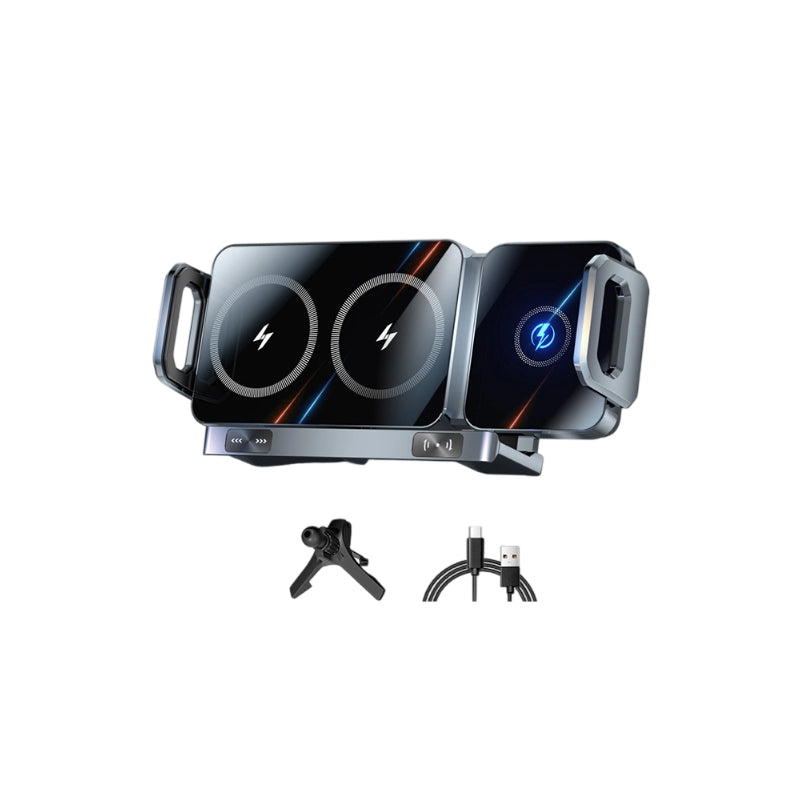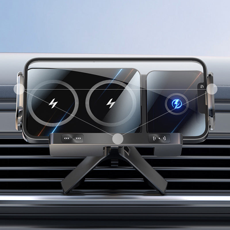 SLIM SNEL OPLADEN – Met een dual-coil-systeem met een snelle draadloze output van 15 W zorgt deze houder voor efficiënt en stabiel opladen van compatibele smartphones. De dubbel verdikte spoel versnelt het opladen terwijl het oppervlak koel aanvoelt en apparaten tegen oververhitting beschermt. Een gereserveerde oplaadpoort maakt gelijktijdig gebruik met andere accessoires mogelijk, waardoor het een betrouwbare oplaadgenoot is op elke rit.