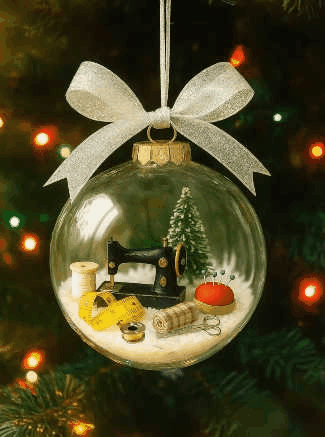 🥰Inside this delicate globe is a tiny world any sewist would adore: a vintage sewing machine, rolls of fabric, a cheerful mini Christmas tree, and the little essentials we can’t live without — tape measure, pincushion, scissors, and bobbins — all nestled in a bed of snowy sparkle.