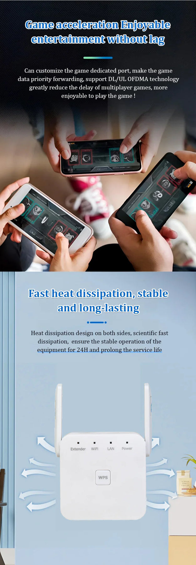 Melhore sua conexão de internet com o Amplificador de Sinal Wi-Fi Dual-Band! Diga adeus à internet lenta e desfrute de navegação e streaming sem interrupções!