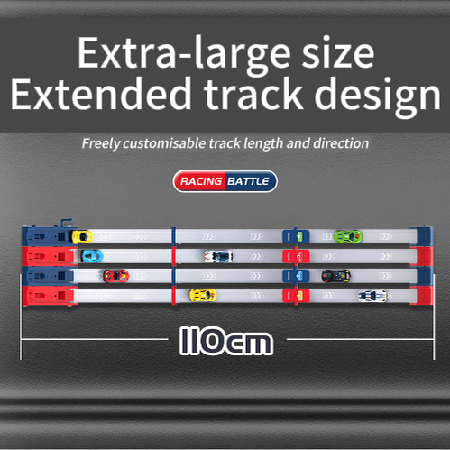 PODALJŠANA 110 CM TIRNICA - Izjemno dolga zasnova steze zagotavlja podaljšano stezo za hitro akcijo. To ustvarja bolj napete dirke in omogoča avtomobilom, da vsakič dosežejo svoj maksimalen zagon za vznemirljive zaključke s fotofinišem.